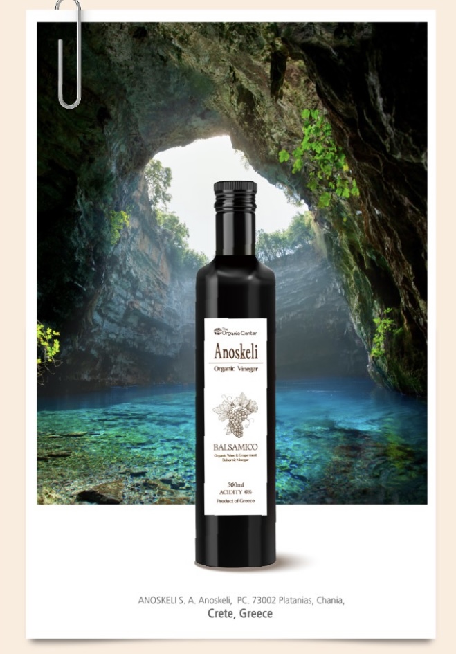 그리스 100%유기농 발사믹식초는 세계적인 장수마을 크레타섬에서 100%유기농포도로 만들어졌으며, 특히 아노스켈리 유기농 발사믹식초는 식품첨가물이 들어가 있지 않으며, 자극적이지 않고 부드러우며 향이 좋아서 샐러드 드레싱으로 아주 좋습니다.