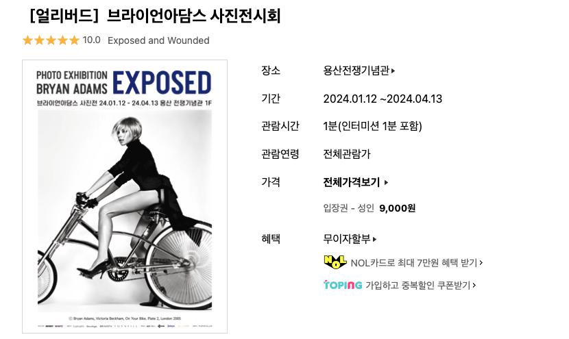 브라이언아담스 대규모 사진전 <얼리버드티켓 50%할인>