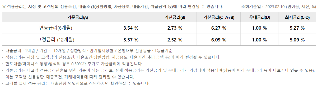 - 기준금리 : 기간별 고정금리, 6개월 · 1년 변동금리부 대출 기준금리