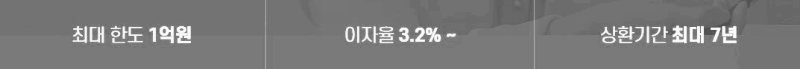 대출조건 최대 1억원에 최저 금리 3.2%부터 가능하며, 상환기간은 최대 7년까지라서 여유롭게 상환하실 수 있다고 합니다.